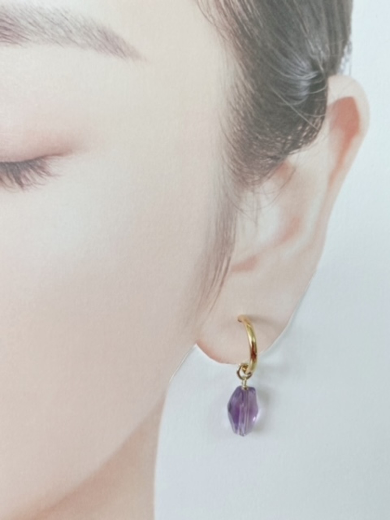 1つ目はローズアメジスト、透明感があり、優しい紫色で光に当たるとキラキラとするパーツです。