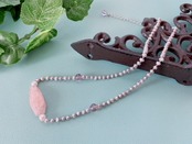 モルガナイト、別名ピンクベルリをトップにネック部分にシルバーの淡水パールを使ったネックレスです。