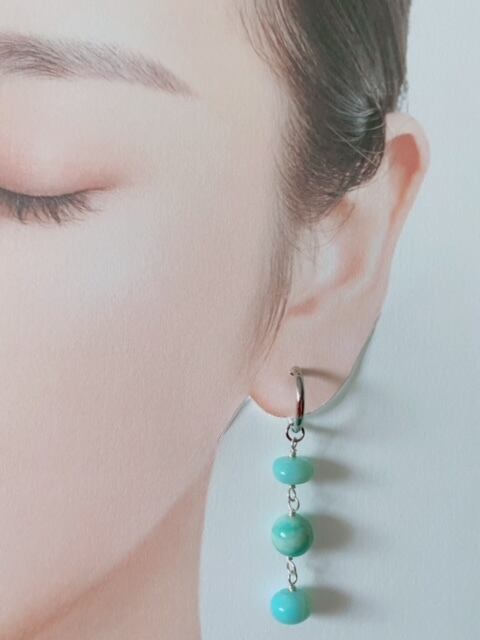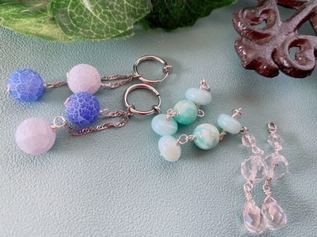 耳元で揺れるアクアなイヤリングは涼しげで夏の定番になります。